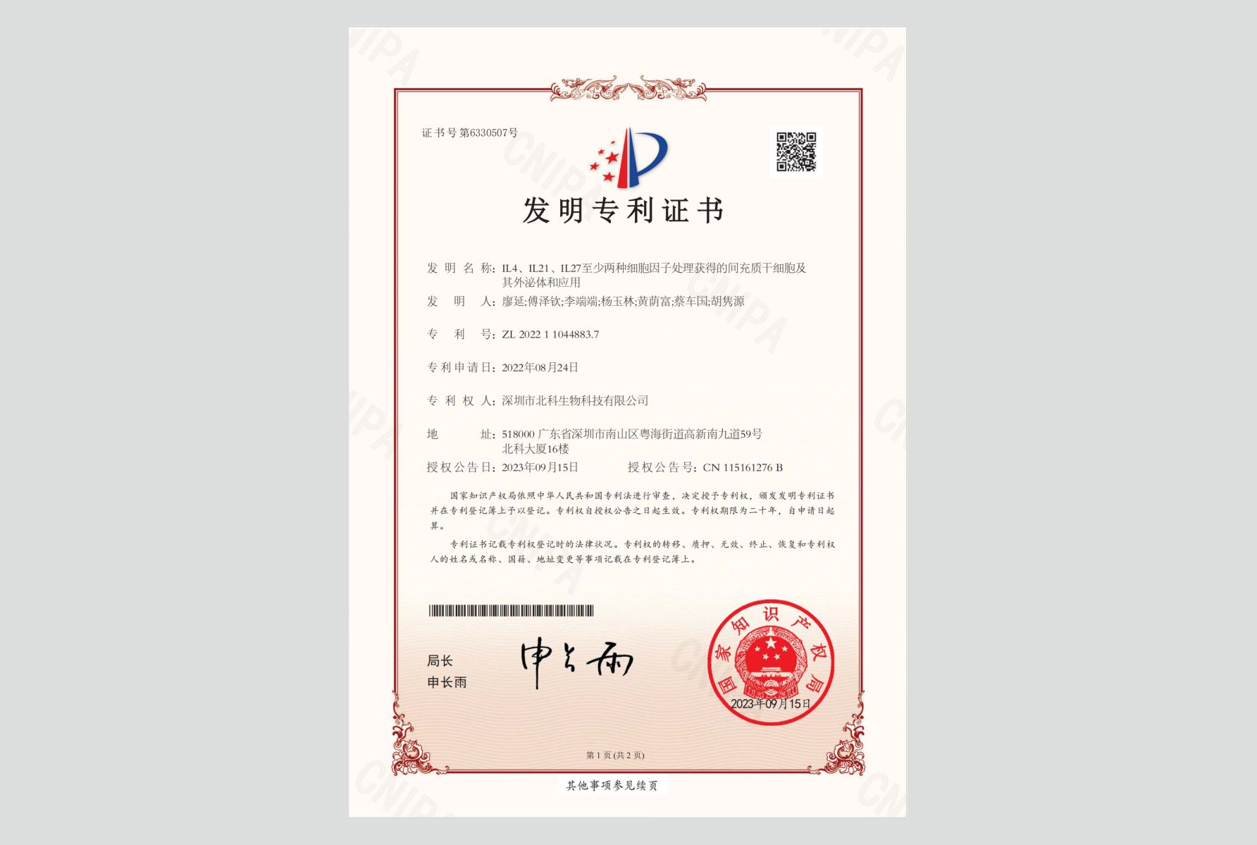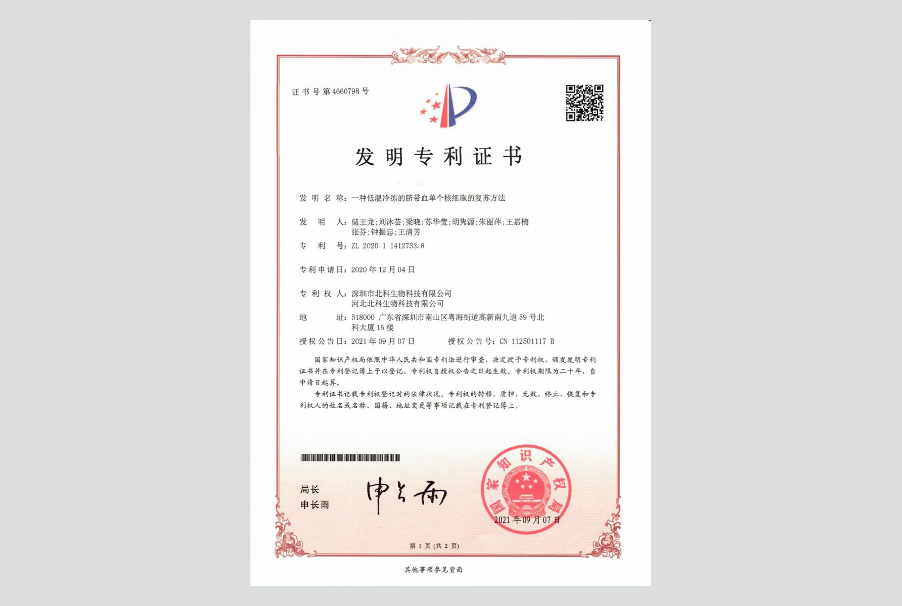 北科生物自成立以來,始終將技術(shù)領(lǐng)先、質(zhì)量安全作為核心競爭力去打造,高度重視并且持續(xù)加大研發(fā)投入,使公司在同行業(yè)中始終保持技術(shù)領(lǐng)先的地位。截至2024年1月,北科生物在細胞領(lǐng)域已申請207項專利,其中162項獲得授權(quán);在國內(nèi)外包括Cell Stem Cell等權(quán)威雜志發(fā)表100余篇論文;承擔(dān)70余項各級政府項目,其中8項國家項目(2項863項目)。北科生物“出品”的每一份細胞涉及680+份標(biāo)準文件,870+份質(zhì)量記錄,最高達910+項質(zhì)量控制節(jié)點的檢測和確認,保障每一份細胞具有可回溯性、可追蹤性。