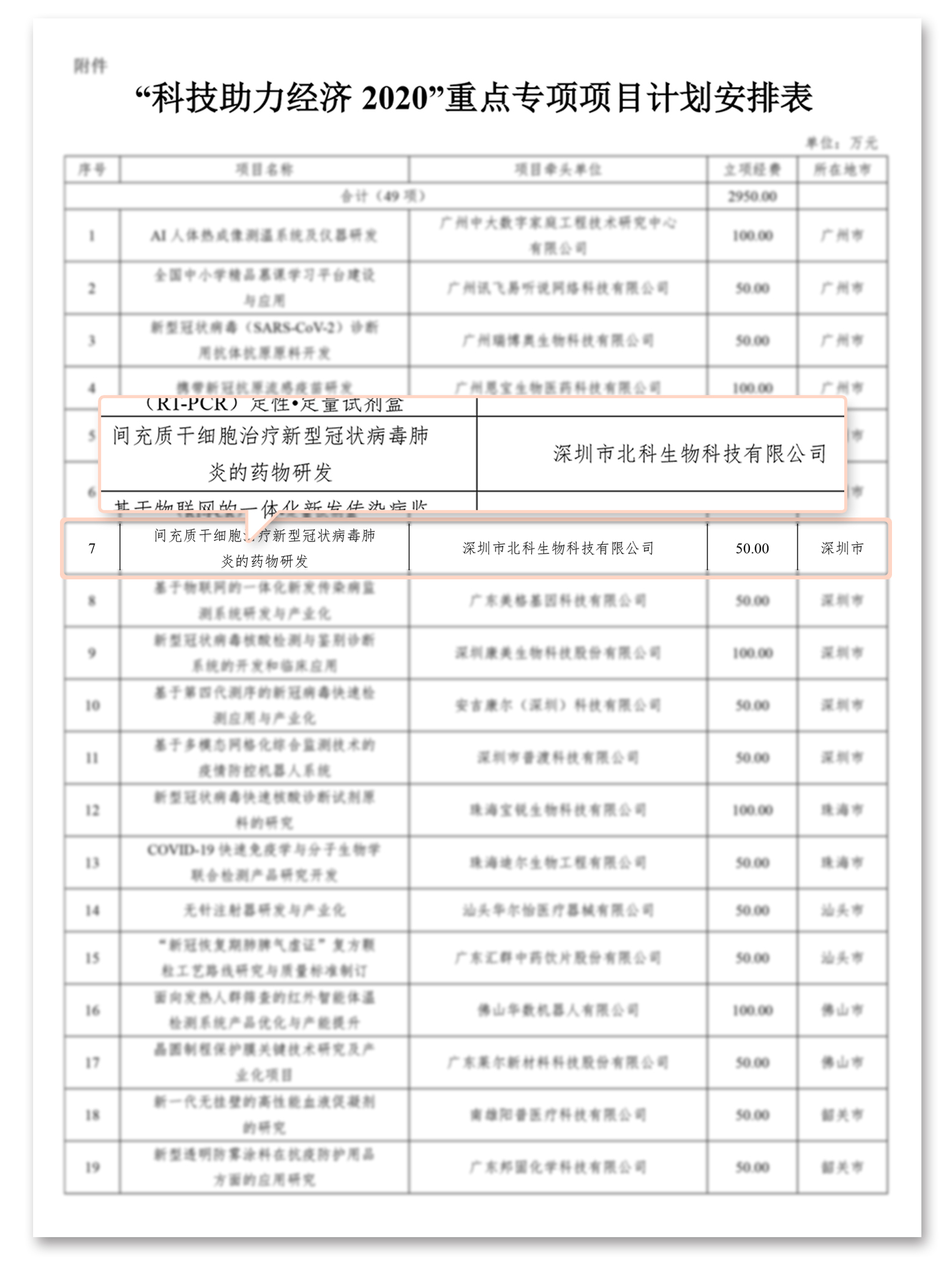 日前,由科技部支持的一批覆蓋國民經(jīng)濟(jì)主要行業(yè)的技術(shù)創(chuàng)新項目陸續(xù)“揭榜”,廣東省科技廳正式發(fā)布了《廣東省科技廳關(guān)于下達(dá)2020年“科技助力經(jīng)濟(jì)2020”重點(diǎn)專項項目計劃的通知》,其中深圳市北科生物科技有限公司(以下簡稱“北科生物”)牽頭的《間充質(zhì)干細(xì)胞治療新型冠狀病毒肺炎的藥物研發(fā)》成功入選,獲“廣東省科技助力經(jīng)濟(jì)2020”重點(diǎn)專項推薦項目。