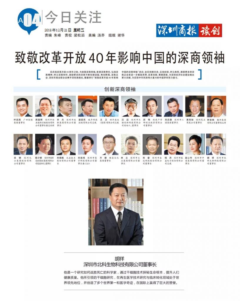 2019年1月14日,北科生物董事長胡祥博士參加第五屆深商全球大會頒獎盛典,榮獲2018年“第十一屆深商風(fēng)云人物”