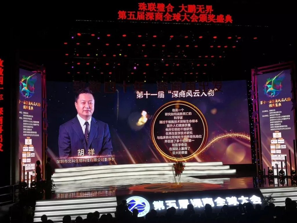 2019年1月14日,北科生物董事長(zhǎng)胡祥博士參加第五屆深商全球大會(huì)頒獎(jiǎng)盛典,榮獲2018年“第十一屆深商風(fēng)云人物”